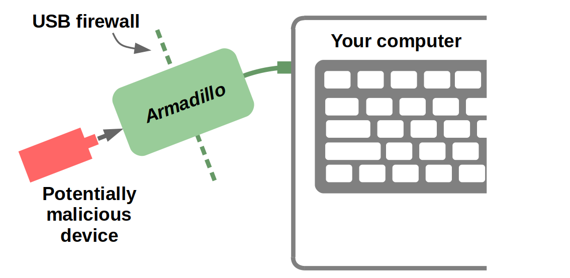 This simplicity means Armadillo is resistant to BadUSB attacks, and protects your computer by: